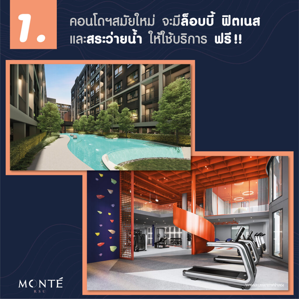 1. คอนโดฯสมัยใหม่ จะมีส่วนกลางให้ใช้บริการฟรี!!
