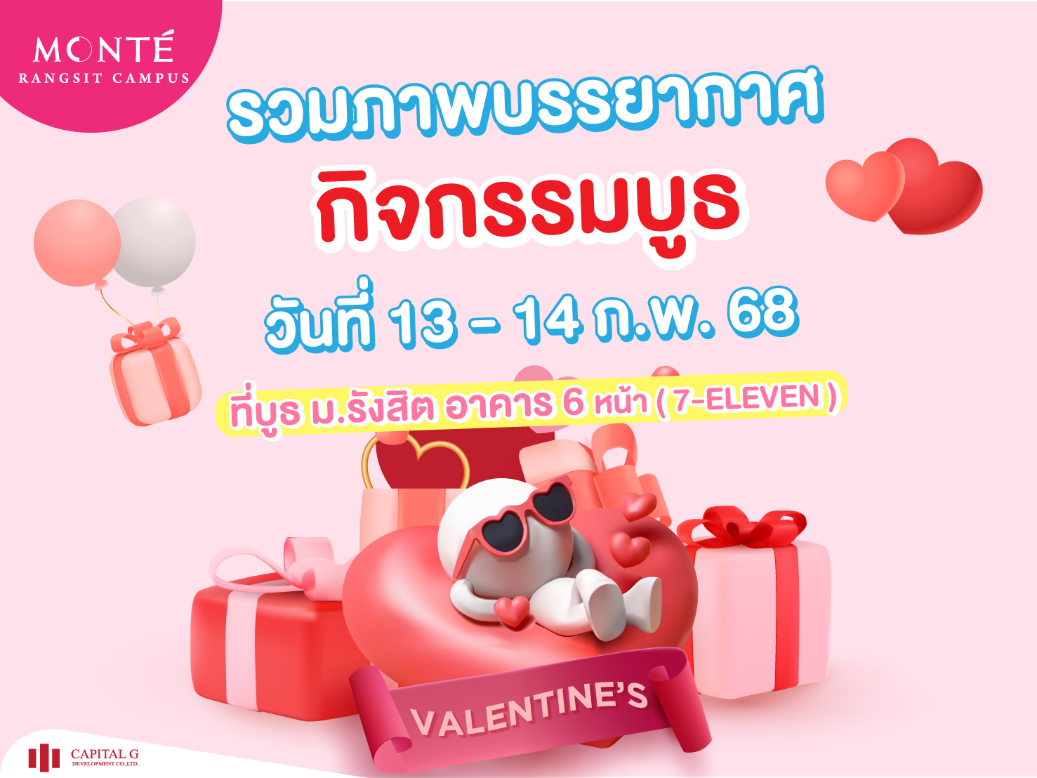 💭 แค่ลงทะเบียนร่วมกิจกรรมภายในบูธ รับไปเลย!! ของขวัญวาเลนไทน์สุดน่ารัก💐 คอนโด Monte’ Rangsit Campus คอนโดพร้อมอยู่ ใกล้ ม.รังสิตที่สุด